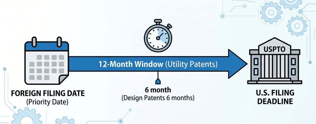 The most critical procedural rule of the Paris Convention is the strict timeline. For utility patents, you must file your U.S. application within 12 months of the earliest filing date of the foreign application. (Note: For design patents and trademarks, this window is only 6 months).